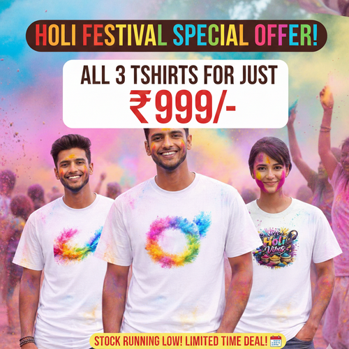 3 Premium Holi Vibes T-Shirts @ 999 + Free Shipping